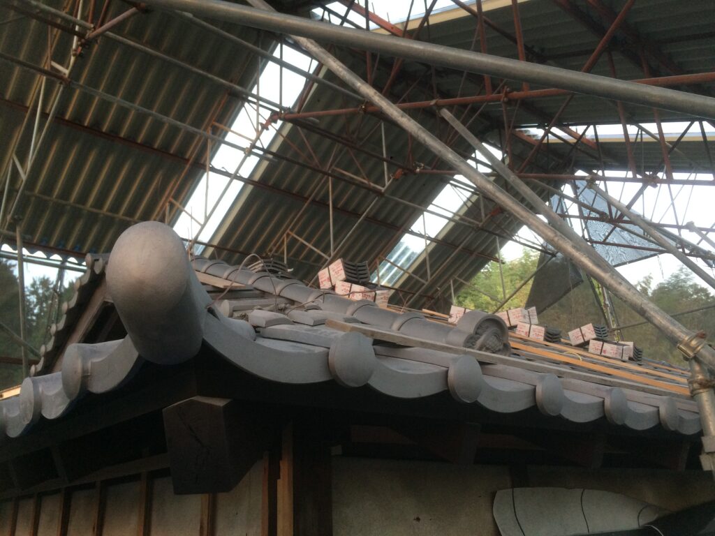 奈良市内 和風住宅リフォームCategory : 日誌と記録/Date : Oct 28th Fri, 2016奈良市内の屋根のやりかえを中心とした機器入れかえリフォーム。大屋根の瓦工事も終盤に。 瓦屋さんが丁寧に仕事を進めてくれています 素屋根があるので下屋があったり、複雑な屋根の復旧工事でも安心して作業がすすめられます。 在来風呂もハーフユニットバスに。既存のユニットバスだと天井があたるところもハーフユニットバスだと壁を自由につくれるので水漏れしにくい、冷たくない床のお風呂が作れました。
