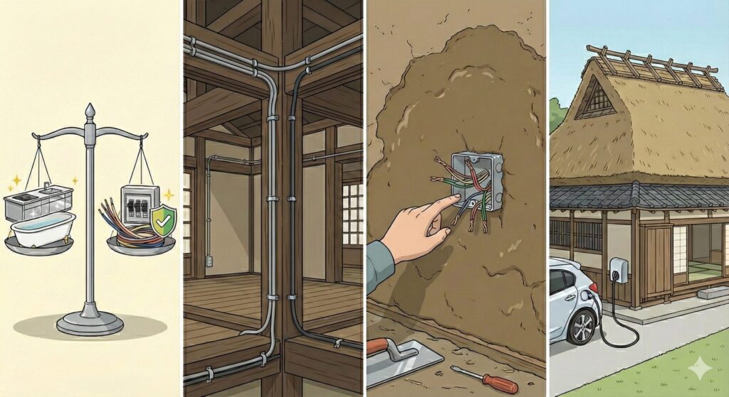 リノベーションを計画するとき、どうしても限られた予算の中で優先順位をつけなければなりません。キッチンやお風呂など、目に見えて便利になる部分につい重点を置きがちですが、そこに至る「配線」や「インフラ」は後回しになりがちです。