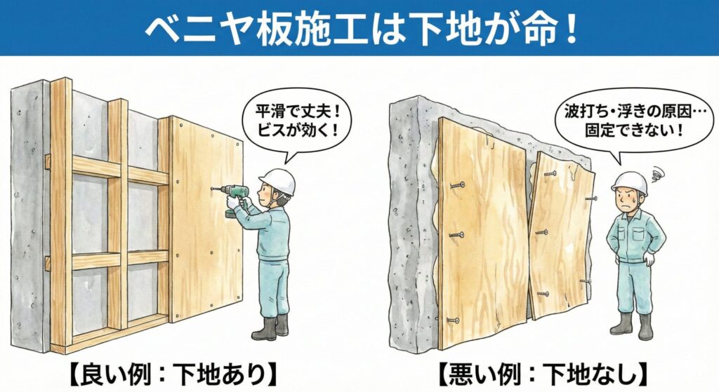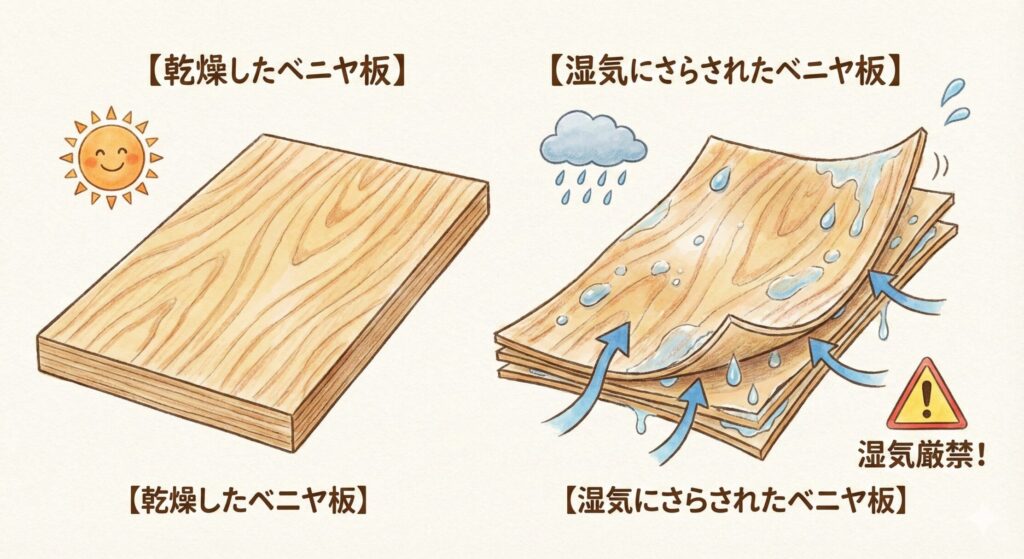 ベニヤ板の注意点:湿気・反り・下地処理など