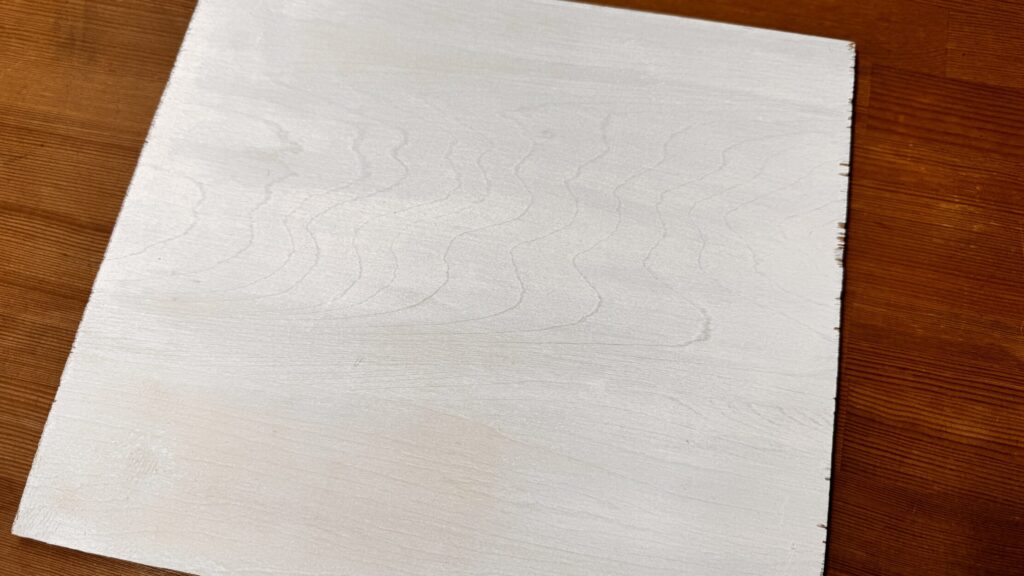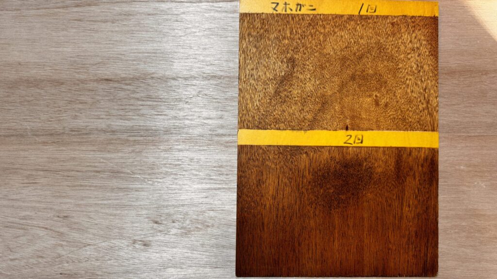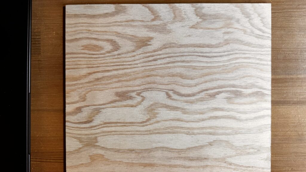 特にオイルステインを塗ったベニヤ板は色に深みがでるので、必ずしておきたい一手間です。