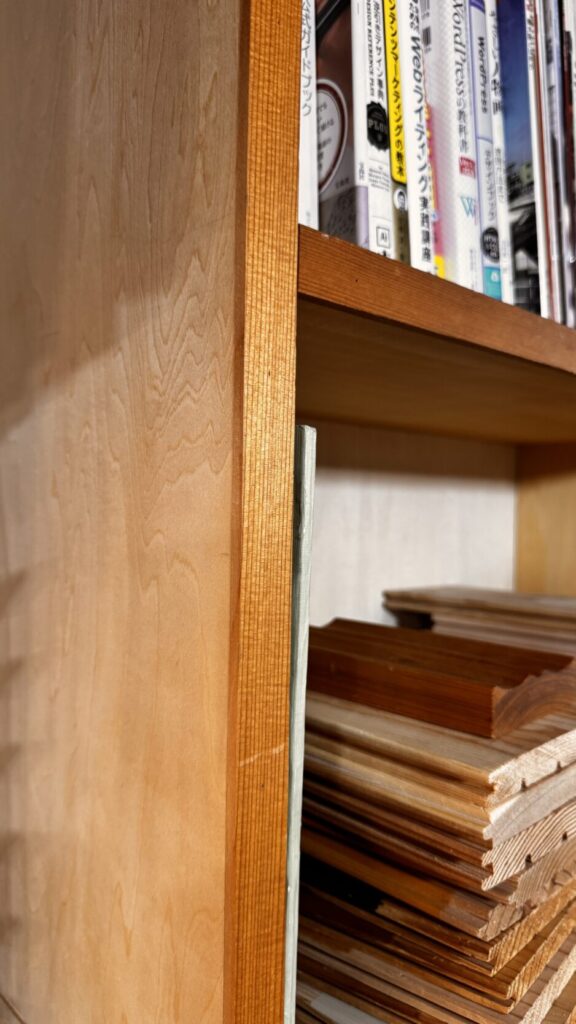 ベニヤ板は壁や天井だけでなく、家具や収納づくりにもよく使われます。特に、無垢材よりも軽く、加工しやすいのでDIYにもプロの造作にも人気の素材です。