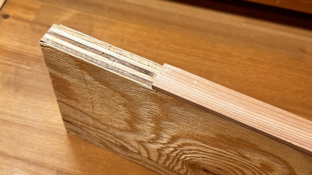 木口に板を貼る「大手貼り」という作業を行えば、ベニヤ板には見えなくなるので高級感が増すという裏技も。
