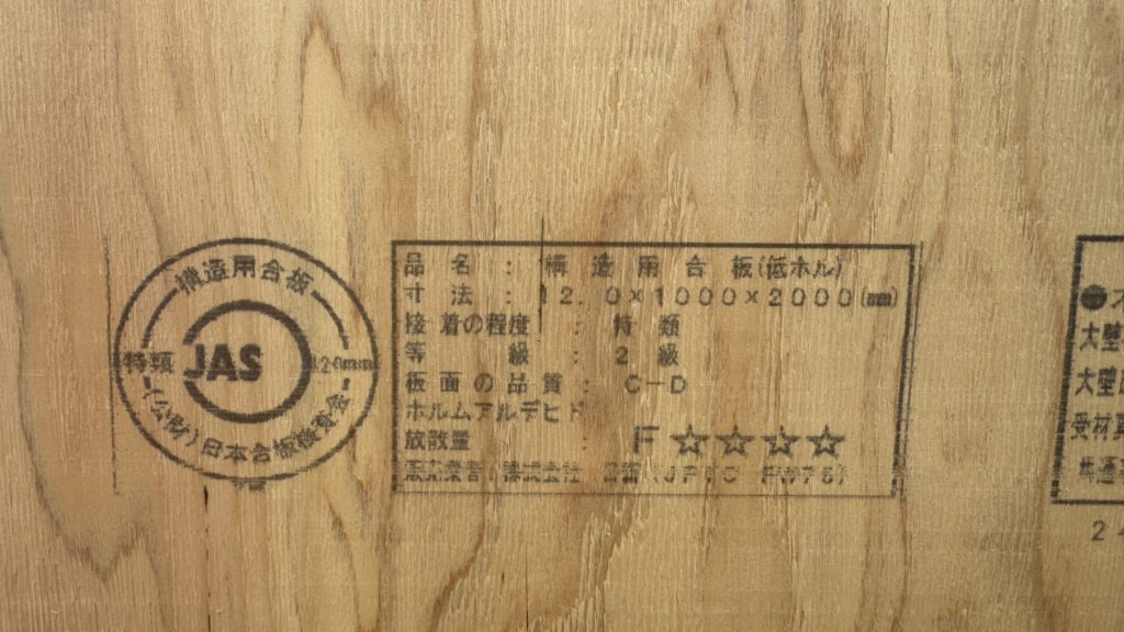 →F☆☆☆☆(フォースター)表示のベニヤ板を選べば安心です。が、対象品以外にも反応される方もいらっしゃるので、気になる方は事前に室内に持ち込んで試すなどの必要があります。特に室内用では必ず確認したいポイントです。