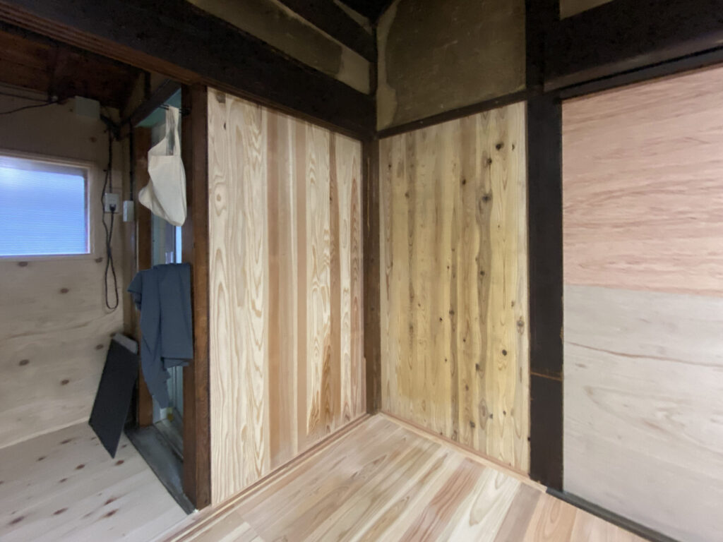 ベニヤ板は壁の仕上げ材としても優秀で、特にシナベニヤや桧ベニヤは見た目も手触りもよく、ウッディな空間づくりにぴったりです。ここでは実際の施工写真をもとに、仕上げのポイントをご紹介します。