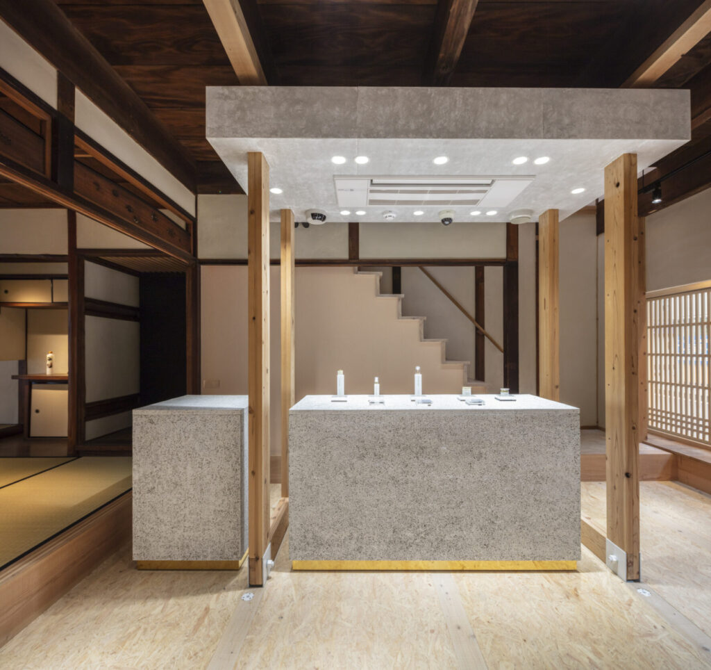 オフィスや店舗では、ベニヤで作ったカウンターやディスプレイ什器も人気。軽量なので移動しやすく、リニューアルもしやすいのがポイントです。