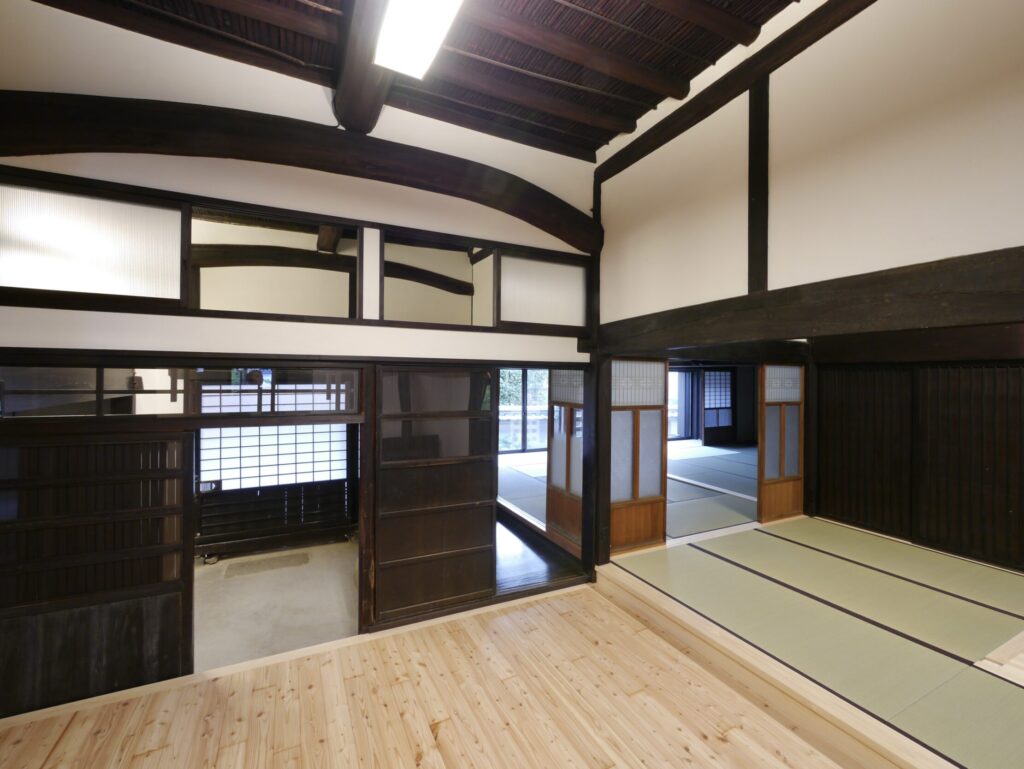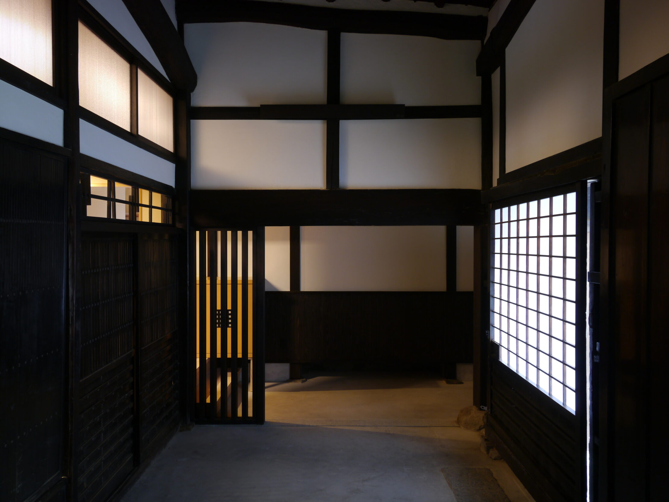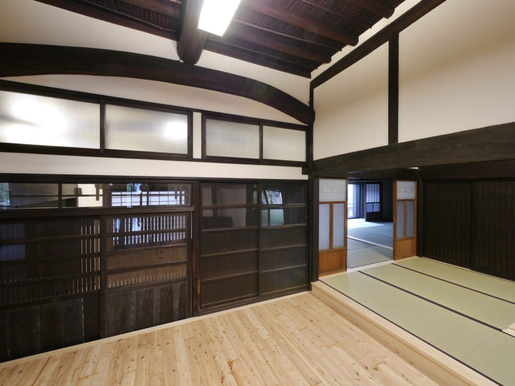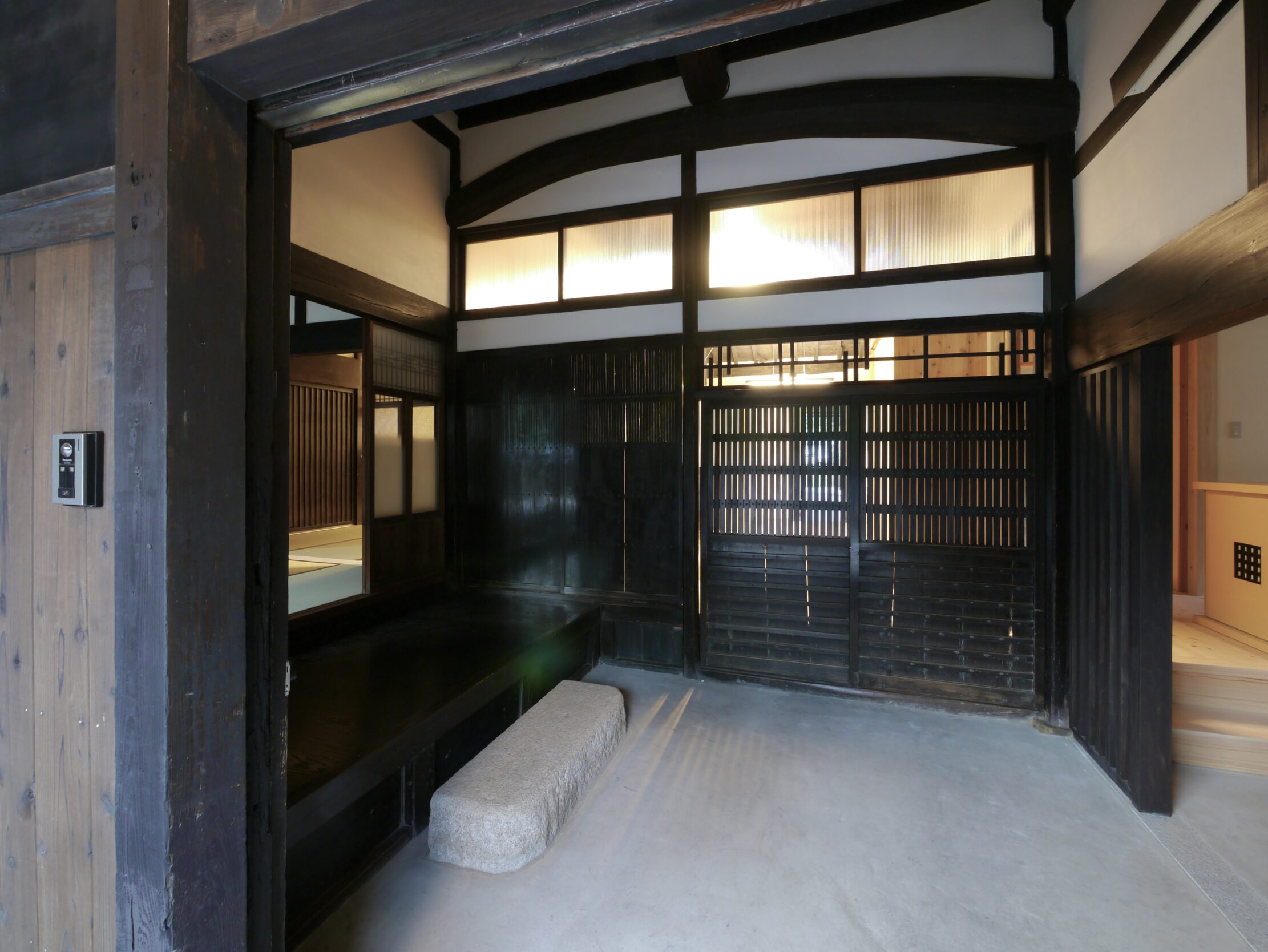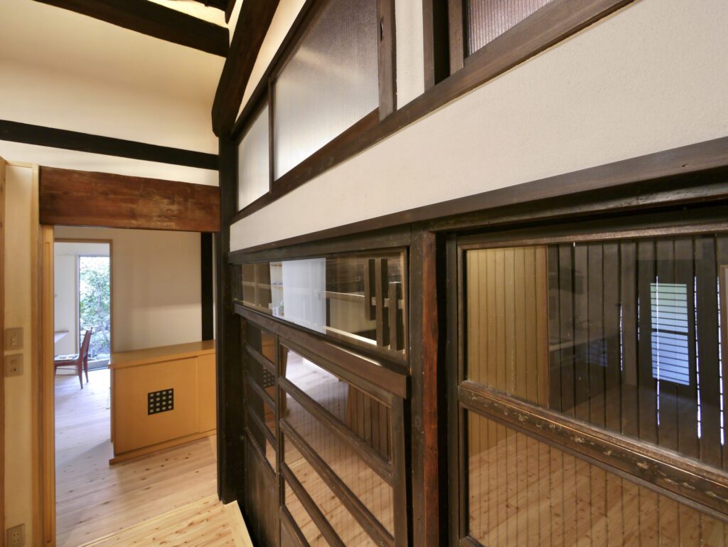 窓を断熱対策として、ペアガラスの断熱サッシに入れ替えました。水回りも刷新。通り土間など、格子建具ななどはアクリル板で防風対策して再利用しています。